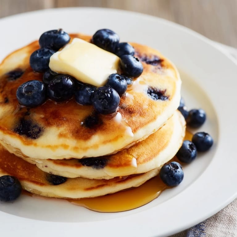 Pin it There's something magical about Sunday mornings when the kitchen fills with the smell of butter hitting a hot griddle. I learned to make these blueberry pancakes from my neighbor who'd always flip them with this practiced snap of the wrist, never needing a spatula twice. The first time I tried her method, I overconfidently launched one pancake clear across the stovetop, but somehow nailed the second batch and discovered that the real secret wasn't technique at all—it was knowing when to stop stirring the batter and just let it be lumpy.