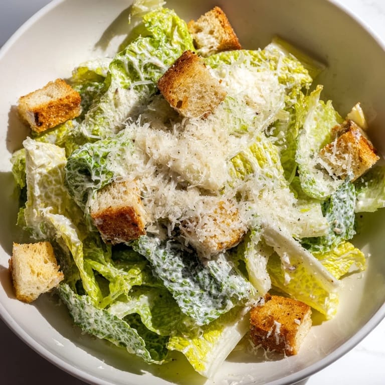 Pin it There's something about a Caesar salad that takes me back to a small bistro corner where I watched someone make one tableside with such casual confidence it seemed effortless. The way they whisked that egg yolk with a fork, how the oil caught the light as it drizzled in, the sharp smell of anchovies mixing with lemon—I realized right then that this wasn't just lettuce tossed with bottled dressing. It was a technique, a moment, a choice to do it properly.