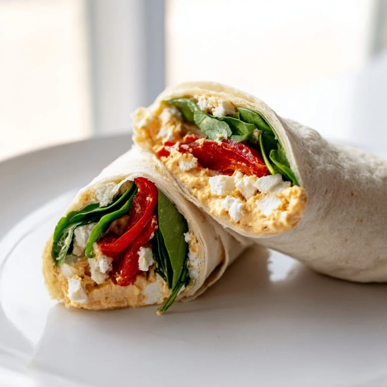 These wraps hold up surprisingly well for a few hours if you wrap them tightly in foil or parchment and keep them cool. The hummus creates a barrier that keeps the tortilla from getting soggy, and the vegetables stay crisp as long as you didnt overload them with wet ingredients. I wouldnt push it past four or five hours, though, because the feta starts to soften and the whole thing loses its brightness. If you have leftover filling, it makes a great salad or a topping for toasted pita.