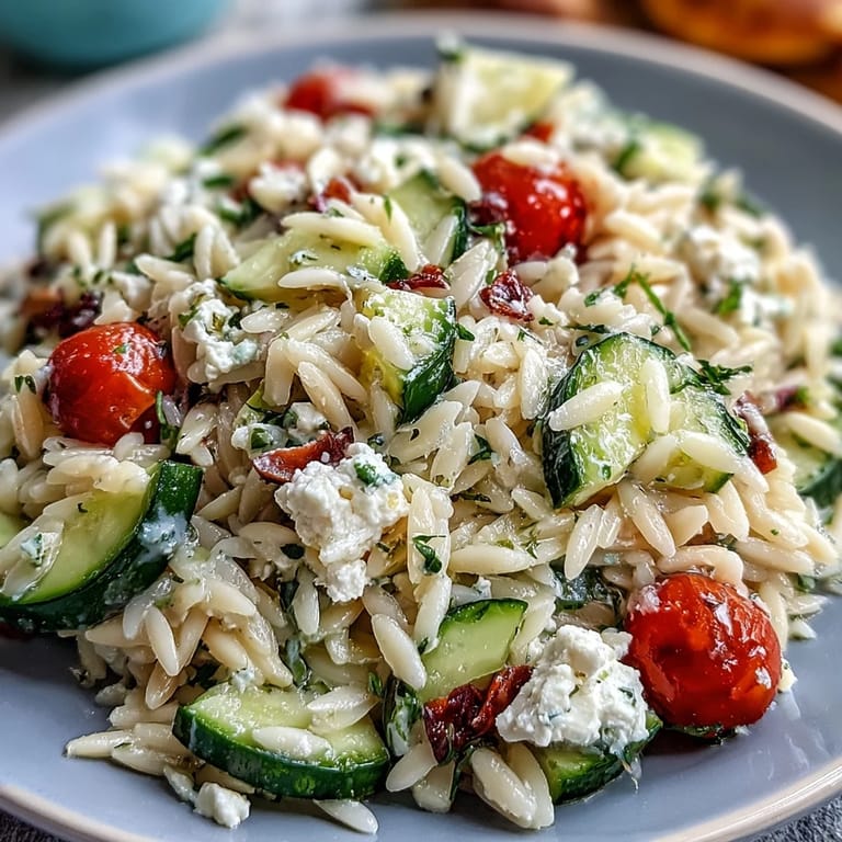 Pin it The sound of chopped cucumber hitting the bowl is oddly satisfying, especially when it's late spring and everything outside starts to feel alive again. On a recent afternoon, with sunlight stretching across my kitchen counter, this Orzo Salad almost made itself as I absentmindedly hummed along to a favorite playlist. The fresh scent of lemon chased away any post-work sluggishness, and the feta, crumbled with slightly messy hands, tasted particularly creamy. This salad is the sort of dish that feels both effortless and rewarding—a gentle nod toward Mediterranean breezes and sunny, open windows.
