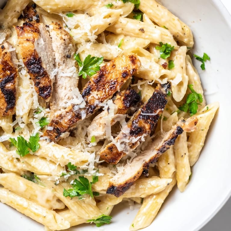 Pin it My neighbor walked over one evening holding a bowl of leftover Caesar salad and a box of penne, asking if I could make something out of it. I had just marinated chicken in a spicy rub for tacos, but the idea clicked instantly. Twenty minutes later, we were sitting on the porch with forks in hand, twirling pasta loaded with smoky, spicy chicken and creamy dressing. It tasted like summer dinner freedom, the kind you throw together without a plan and end up craving every week after.