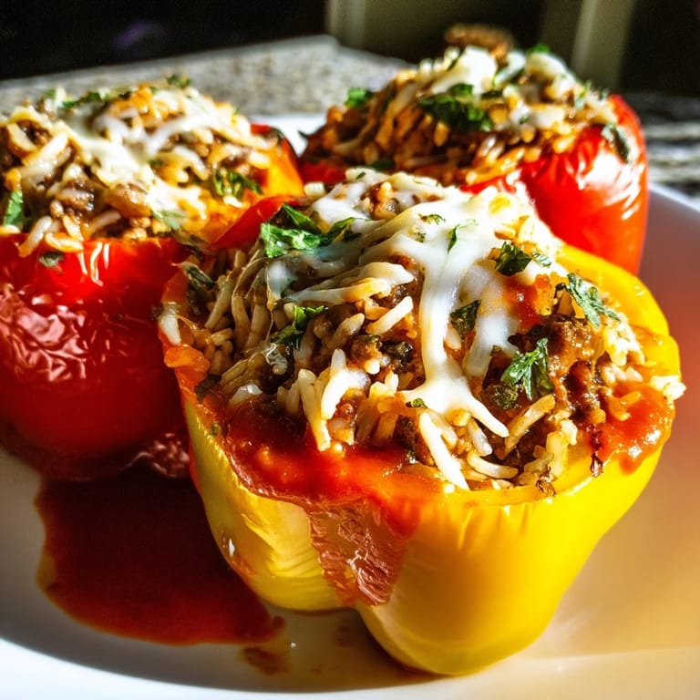 Pin it My neighbor dropped off a bag of bell peppers from her garden one August, and I had no idea what to do with four massive ones sitting on my counter. That evening, I remembered my mom's stuffed peppers from childhood, but I wanted to make them my own with a heartier filling and melted cheese on top. The first batch came out of the oven bubbling and golden, and I realized this dish had quietly become the thing I now make whenever I want comfort that feels a little bit special.